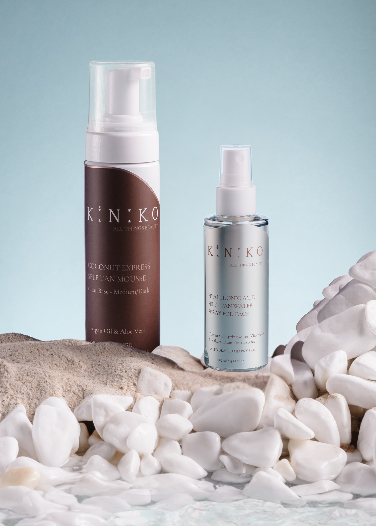 Iegūsti skaistu iedegumu no galvas līdz kājām ar KINIKO "HydraGlow" duetu. KOKOSRIEKSTU "EXPRESS" PAŠTONĒJOŠĀS PUTAS un HIALURONSKĀBES PAŠIEDEGUMA ŪDENS SEJAI harmoniski papildina viens otru, radot nevainojamu, dabiski starojošu iedegumu rezultātu.